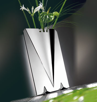 Абсолютная симметричность и современный дизайн этой вазы превосходно отражают дух времени. Четкость и лаконичность линий станет украшением и гордостью любого дома. Мастерство выполнения этих ваз позволило придать геометричность форме, а умеренность элементов декора гармонично сочетается даже с самыми причудливыми цветами.